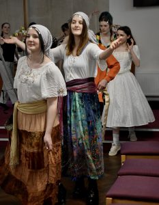 Bristol Opera in rehearsal at St Andrews Church integrating Chorus, Youth Chorus, Principals, Dancers and Circus Acts in preparation for the run at Redland Hall – 16th, 17th and 18th April 2026. See our ticket page for more information. Roll up to buy tickets! Sung in English with a full orchestra.